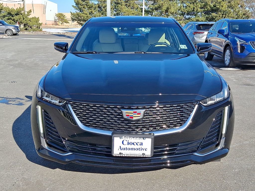 The exterior of this Cadillac CT5 Luxury exudes a commanding presence, with its sleek, sculpted lines and bold Black finish. The 18-inch alloy wheels with a bright silver finish lend an elegant touch, while the front license plate bracket and rain-sensing wipers add both style and convenience.