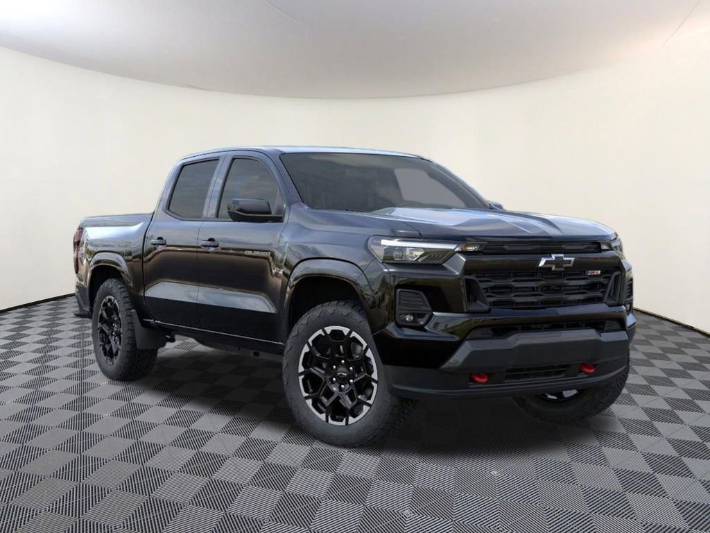 Black 2026 Chevrolet Colorado Z71 4WD 8-Speed Automatic 2.7L I4 Turbocharged DOHC 16V LEV3-ULEV50 310hp 4WD, 3.42 Rear Axle Ratio, 4-Way Manual Passenger Seat Adjuster, 4-Wheel Disc Brakes, 6 Speakers, 6-Speaker Audio System Feature, 8-Way Power Driver Seat Adjuster, ABS brakes, Adaptive Cruise Control, Air Conditioning, Alloy wheels, AM/FM radio: SiriusXM with 360L, Apple CarPlay/Android Auto, Auto High-beam Headlights, Auto-dimming Rear-View mirror, Automatic Emergency Braking, Automatic temperature control, Black Spray-on Bedliner with Chevrolet Logo, Bose Premium 7-Speaker Audio System Feature, Brake assist, Bumpers: body-color, Chevy Safety Assist, Cloth/Evotex Seat Trim, Compass, Delay-off headlights, Driver and Front Passenger Heated Seats, Driver and Front Passenger Ventilated Seats, Driver door bin, Driver Memory Settings, Driver Seatback Map Pocket, Driver vanity mirror, Dual front impact airbags, Dual front side impact airbags, Electronic Stability Control, Emergency communication system: OnStar, Following Distance Indicator, Forward Collision Alert, Front anti-roll bar, Front Bucket Seats, Front Center Armrest, Front dual zone A/C, Front fog lights, Front Passenger Seatback Map Pocket, Front Pedestrian and Bicyclist Braking, Front reading lights, Front wheel independent suspension, HD Surround Vision, Heated door mirrors, Heated front seats, Heated Steering Wheel, Illuminated entry, IntelliBeam Automatic High Beam on/Off, Lane Keep Assist with Lane Departure Warning, Low tire pressure warning, Navigation System, Occupant sensing airbag, Outside temperature display, Overhead airbag, Overhead console, Panic alarm, Passenger door bin, Passenger vanity mirror, Perforated Leather-Appointed Seat Trim, Power door mirrors, Power Driver Lumbar Control Seat Adjuster, Power driver seat, Power Sliding Glass with Manual Shade Sunroof, Power steering, Power windows, Preferred Equipment Group 4Z7, Radio data system, Radio: 11.3 Diagonal Advanced Color LCD Display, Rear Center Armrest, Rear Pedestrian Alert, Rear reading lights, Rear step bumper, Rear window defroster, Remote keyless entry, Security system, SiriusXM with 360L Trial Subscription, Speed control, Speed-sensing steering, Split folding rear seat, Steering Wheel Mounted Audio Controls, Steering wheel mounted audio controls, Tachometer, Technology Package, Telescoping steering wheel, Tilt steering wheel, Traction control, Trip computer, Variably intermittent wipers, Wheels: 18 x 8.5 Android Dark Full Gloss Aluminum, Wheels: 20 x 9 Painted Aluminum with Machined Face, Wireless Phone Projection, Z71 Convenience Package III, 4WD.
