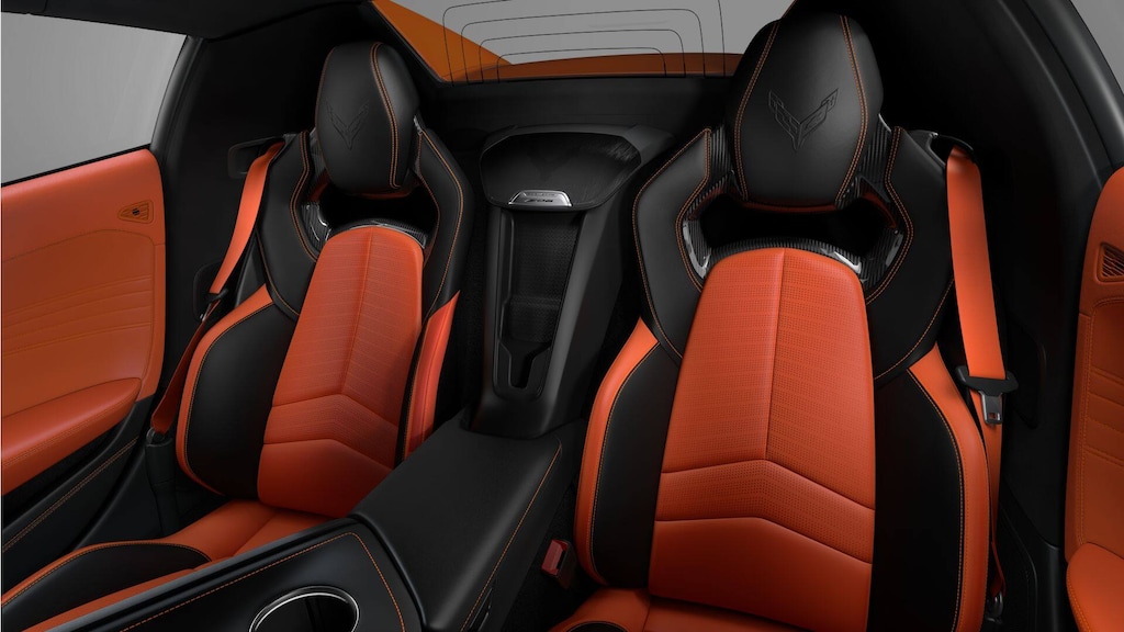 14 Speakers, 2 Cargo Nets, 3 Years SiriusXM, 4-Wheel Disc Brakes, 8-Way Power Driver Seat Adjuster, 8-Way Power Passenger Seat Adjuster, ABS brakes, Adaptive suspension, Air Conditioning, Alloy wheels, AM/FM radio: SiriusXM, Auto High-beam Headlights, Auto-dimming door mirrors, Auto-dimming Rear-View mirror, Automatic Leveling System Headlamp Control, Automatic temperature control, Black Exhaust Tips, Bose Performance Series Sound System with 14 Speakers, Brake assist, Bumpers: body-color, Compass, Convertible HardTop, Convertible roof lining, Custom Leather Wrapped Interior Package, Delay-off headlights, Driver door bin, Driver Power Bolster Seat Adjuster, Driver vanity mirror, Dual front impact airbags, Dual front side impact airbags, Electrical Theft Deterrent System, Electronic Stability Control, Emergency communication system: OnStar and Chevrolet connected services capable, Exterior Parking Camera Rear, Four wheel independent suspension, Front anti-roll bar, Front Bucket Seats, Front Center Armrest, Front dual zone A/C, Front Lift Adjustable Height with Memory, Front reading lights, Fully automatic headlights, Garage door transmitter, Glass rear window, GT2 Bucket Seats, HD Front and Rear Vision Cameras, Heads-Up Display, Heated and Vented Driver and Passenger Seats, Heated door mirrors, Heated front seats, Heated Steering Wheel, Heated steering wheel, Illuminated entry, Integrated roll-over protection, Leather Shift Knob, Leather steering wheel, Low tire pressure warning, Memory Driver and Passenger Convenience Package, Memory seat, Napa Leather Seating Surfaces with Perforated Inserts, Navigation System, Occupant sensing airbag, Orange Seat Belt Color, Outside temperature display, Overhead console, Panic alarm, Passenger door bin, Passenger Power Bolster Seat Adjuster, Passenger vanity mirror, Performance Data and Video Recorder, Power convertible roof, Power door mirrors, Power Driver Lumbar Control Seat Adjuster, Power driver seat, Power Passenger Lumbar Control Seat Adjuster, Power passenger seat, Power steering, Power windows, Power-Adjustable Outside Heated Mirrors, Preferred Equipment Group 3LZ, Premium audio system: Chevrolet Infotainment 3 Premium, Radio data system, Radio: Infotainment System with Google Built-in, Rear anti-roll bar, Rear Cross Traffic Alert, Rear window defroster, Remote keyless entry, Security system, Side Blind Zone Alert, Speed control, Speed-sensing steering, Spoiler, Sport steering wheel, Stealth Interior Trim Package, Steering wheel memory, Steering wheel mounted audio controls, Sueded Microfiber-Wrapped Upper Interior Trim Package, Tachometer, Telescoping steering wheel, Tilt steering wheel, Traction control, Trip computer, Turn signal indicator mirrors, Universal Home Remote, Variably intermittent wipers, Vehicle Inclination Theft Deterrent Sensor, Vehicle Interior Movement Theft Deterrent Sensor, Ventilated front seats, Voltmeter, Wheels: 20" x 10" Front and 21" x 13" Rear Gloss Black, Wheels: 20" x 10" Front and 21" x 13" Rear Titanium Satin, Wireless Phone Charging.