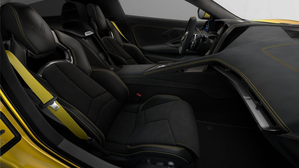 14 Speakers, 2 Cargo Nets, 4-Wheel Disc Brakes, 8-Way Power Driver Seat Adjuster, 8-Way Power Passenger Seat Adjuster, ABS brakes, Air Conditioning, Alloy wheels, AM/FM radio: SiriusXM, Auto High-beam Headlights, Auto-dimming door mirrors, Auto-dimming Rear-View mirror, Automatic Leveling System Headlamp Control, Automatic temperature control, Black Exhaust Tips, Bose Performance Series Sound System with 14 Speakers, Brake assist, Bumpers: body-color, Carbon Fiber Interior Trim, Compass, Competition Yellow Custom Leather Stitch, Custom Leather Wrapped Interior Package, Delay-off headlights, Driver door bin, Driver Power Bolster Seat Adjuster, Driver vanity mirror, Dual front impact airbags, Dual front side impact airbags, Electrical Theft Deterrent System, Electronic Limited-Slip Differential, Electronic Stability Control, Emergency communication system: OnStar and Chevrolet connected services capable, Exterior Parking Camera Rear, Four wheel independent suspension, Front anti-roll bar, Front Bucket Seats, Front Center Armrest, Front dual zone A/C, Front License Plate Bracket, Front Lift Adjustable Height with Memory, Front reading lights, Fully automatic headlights, Garage door transmitter, GT2 Bucket Seats, HD Front and Rear Vision Cameras, Head-Up Display, Heads-Up Display, Heated and Vented Driver and Passenger Seats, Heated door mirrors, Heated front seats, Heated Steering Wheel, Heated steering wheel, Heavy-Duty Cooling System, Illuminated entry, Leather Shift Knob, Leather steering wheel, Low tire pressure warning, Memory Driver and Passenger Convenience Package, Memory seat, Napa Leather Seating Surfaces with Perforated Inserts, Navigation System, Occupant sensing airbag, Outside temperature display, Overhead console, Panic alarm, Passenger door bin, Passenger Power Bolster Seat Adjuster, Passenger vanity mirror, Performance Data and Video Recorder, Performance Exhaust with Stainless-Steel Tips, Performance Rear Axle Ratio, Performance Traction Management, Power door mirrors, Power Driver Lumbar Control Seat Adjuster, Power driver seat, Power Passenger Lumbar Control Seat Adjuster, Power passenger seat, Power steering, Power windows, Power-Adjustable Outside Heated Mirrors, Preferred Equipment Group 3LT, Premium audio system: Chevrolet Infotainment 3 Premium, Radio data system, Radio: Infotainment System with Google Built-in, Rear anti-roll bar, Rear Cross Traffic Alert, Rear window defroster, Rear Z51 Spoiler, Remote keyless entry, Security system, Side Blind Zone Alert, Speed control, Speed-sensing steering, Sport steering wheel, Stealth Interior Trim Package, Steering wheel memory, Steering wheel mounted audio controls, Sueded Microfiber-Wrapped Steering Wheel, Sueded Microfiber-Wrapped Upper Interior Trim Package, Tachometer, Telescoping steering wheel, Tilt steering wheel, Traction control, Trip computer, Turn signal indicator mirrors, Universal Home Remote, Variably intermittent wipers, Vehicle Inclination Theft Deterrent Sensor, Vehicle Interior Movement Theft Deterrent Sensor, Velocity Yellow-Painted Calipers, Ventilated front seats, Visible Carbon Fiber Removable Roof Panel, Voltmeter, Wheels: 19 x 8.5 Front and 20 x 11 Rear 5-Split-Spoke, Wireless Phone Charging, Yellow Seat Belt Color, Z51 Performance Brakes, Z51 Performance Package, Z51 Performance Suspension, Z51 Performance Suspension with Magnetic Selective Ride Control.