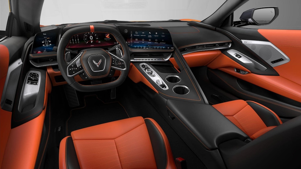 14 Speakers, 2 Cargo Nets, 4-Wheel Disc Brakes, 8-Way Power Driver Seat Adjuster, 8-Way Power Passenger Seat Adjuster, ABS brakes, Air Conditioning, Alloy wheels, AM/FM radio: SiriusXM, Auto High-beam Headlights, Auto-dimming door mirrors, Auto-dimming Rear-View mirror, Automatic temperature control, Bose Performance Series Sound System with 14 Speakers, Brake assist, Bumpers: body-color, Compass, Custom Leather Wrapped Interior Package, Delay-off headlights, Driver door bin, Driver Power Bolster Seat Adjuster, Driver vanity mirror, Dual front impact airbags, Dual front side impact airbags, Electrical Theft Deterrent System, Electronic Stability Control, Emergency communication system: OnStar and Chevrolet connected services capable, Exterior Parking Camera Rear, Four wheel independent suspension, Front anti-roll bar, Front Bucket Seats, Front Center Armrest, Front dual zone A/C, Front reading lights, Fully automatic headlights, Garage door transmitter, GT2 Bucket Seats, HD Front and Rear Vision Cameras, Head-Up Display, Heads-Up Display, Heated and Vented Driver and Passenger Seats, Heated door mirrors, Heated front seats, Heated Steering Wheel, Heated steering wheel, Illuminated entry, Leather Shift Knob, Leather steering wheel, Low tire pressure warning, Memory Driver and Passenger Convenience Package, Memory seat, Napa Leather Seating Surfaces with Perforated Inserts, Navigation System, Occupant sensing airbag, Outside temperature display, Overhead console, Panic alarm, Passenger door bin, Passenger Power Bolster Seat Adjuster, Passenger vanity mirror, Performance Data and Video Recorder, Power door mirrors, Power Driver Lumbar Control Seat Adjuster, Power driver seat, Power Passenger Lumbar Control Seat Adjuster, Power passenger seat, Power steering, Power windows, Power-Adjustable Outside Heated Mirrors, Premium audio system: Chevrolet Infotainment 3 Premium, Radio data system, Radio: Infotainment System with Google Built-in, Rear anti-roll bar, Rear Cross Traffic Alert, Rear window defroster, Remote keyless entry, Security system, Side Blind Zone Alert, Speed control, Speed-sensing steering, Sport steering wheel, Steering wheel memory, Steering wheel mounted audio controls, Sueded Microfiber-Wrapped Upper Interior Trim Package, Tachometer, Telescoping steering wheel, Tilt steering wheel, Traction control, Trip computer, Turn signal indicator mirrors, Universal Home Remote, Variably intermittent wipers, Vehicle Inclination Theft Deterrent Sensor, Vehicle Interior Movement Theft Deterrent Sensor, Ventilated front seats, Voltmeter, Wheels: 19 x 8.5 Front and 20 x 11 Rear 5-Split-Spoke, Wireless Phone Charging.
