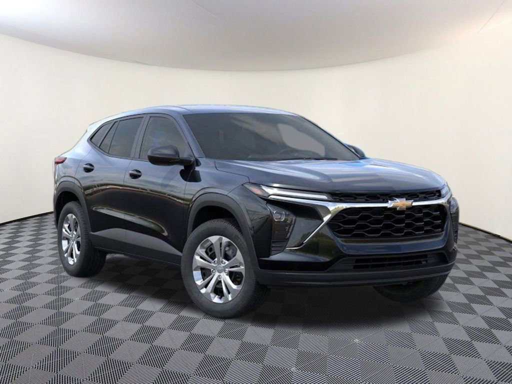 Black 2026 Chevrolet Trax LS FWD 6-Speed Automatic ECOTEC 1.2L Turbo 2-Way Adjustable Front Head Restraints, 3.50 Final Drive Axle Ratio, 4 Speakers, 4-Speaker Audio System Feature, 4-Way Manual Front Passenger Seat Adjuster, 4-Wheel Disc Brakes, 6-Way Manual Driver Seat Adjuster, ABS brakes, Air Conditioning, AM/FM radio: SiriusXM, Auto High-beam Headlights, Brake assist, Bumpers: body-color, Cloth Seat Trim, Compass, Delay-off headlights, Driver door bin, Driver vanity mirror, Dual front impact airbags, Dual front side impact airbags, Electronic Stability Control, Emergency communication system: OnStar One Essentials, Exterior Parking Camera Rear, Front anti-roll bar, Front Bucket Seats, Front Center Armrest, Front reading lights, Front wheel independent suspension, Fully automatic headlights, Illuminated entry, Low tire pressure warning, Occupant sensing airbag, Outside temperature display, Overhead airbag, Overhead console, Panic alarm, Passenger door bin, Passenger vanity mirror, Power door mirrors, Power steering, Power windows, Premium audio system: Chevrolet Infotainment 3, Radio data system, Radio: Chevrolet Infotainment 3 System with AM/FM, Rear window defroster, Rear window wiper, Remote keyless entry, Security system, SiriusXM Trial Subscription, Speed control, Split folding rear seat, Spoiler, Steering wheel mounted audio controls, Tachometer, Telescoping steering wheel, Tilt steering wheel, Traction control, Trip computer, Variably intermittent wipers, Wheels: 17 Steel with Covers, Wireless Apple CarPlay/Wireless Android Auto.Recent Arrival! 28/32 City/Highway MPG