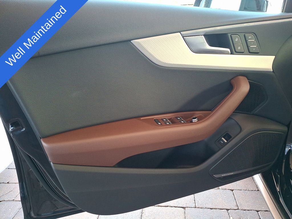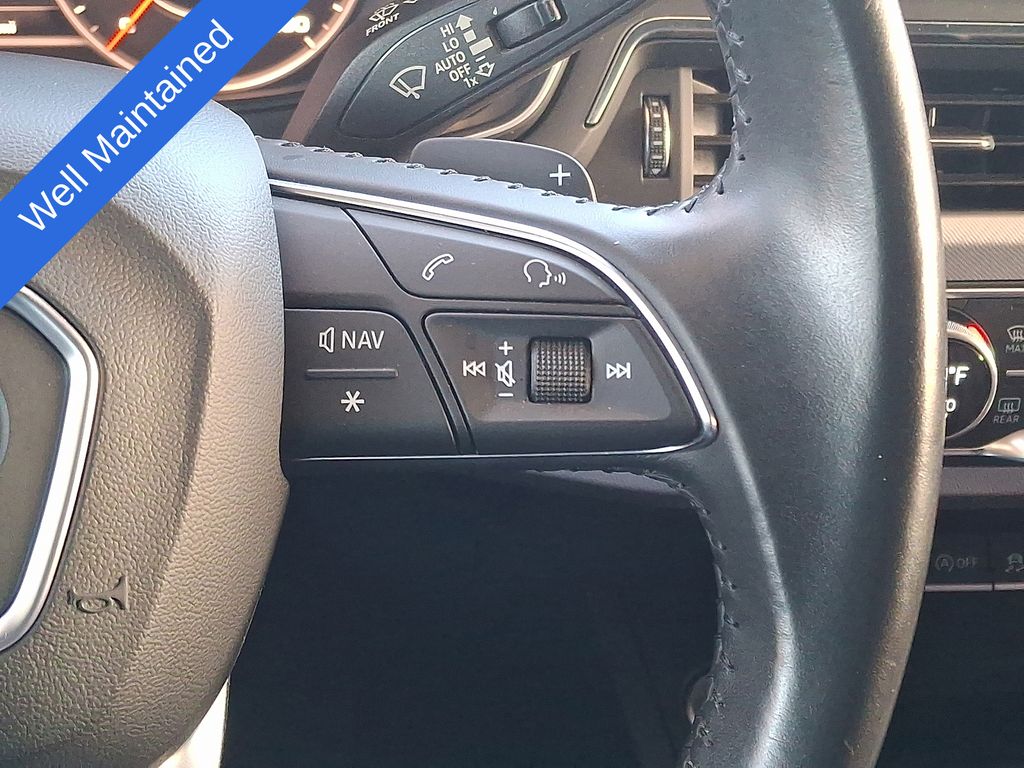 10 Speakers, 4-Wheel Disc Brakes, ABS brakes, Adaptive suspension, Air Conditioning, Alloy wheels, Audi smartphone interface (Apple CarPlay/Android Auto), Auto-dimming Rear-View mirror, Automatic temperature control, Brake assist, Bumpers: body-color, Compass, Delay-off headlights, Driver door bin, Driver vanity mirror, Dual front impact airbags, Dual front side impact airbags, Electronic Stability Control, Exterior Parking Camera Rear, Four wheel independent suspension, Front anti-roll bar, Front Bucket Seats, Front Center Armrest, Front dual zone A/C, Front fog lights, Front reading lights, Fully automatic headlights, Garage door transmitter: HomeLink, Headlight cleaning, Heated 3-Step Power Front Seats, Heated door mirrors, Heated front seats, High intensity discharge headlights: Xenon plus, Illuminated entry, Knee airbag, Leather Seating Surfaces, Leather Shift Knob, Leather steering wheel, Low tire pressure warning, Occupant sensing airbag, Outside temperature display, Overhead airbag, Overhead console, Panic alarm, Passenger door bin, Passenger vanity mirror, Power door mirrors, Power driver seat, Power Liftgate, Power moonroof, Power passenger seat, Power steering, Power windows, Radio data system, Radio: Audi MMI Navigation Plus w/MMI Touch, Rain sensing wipers, Rear air conditioning, Rear anti-roll bar, Rear fog lights, Rear reading lights, Rear seat center armrest, Rear window defroster, Rear window wiper, Remote CD player, Remote keyless entry, Roof rack: rails only, Speed control, Speed-sensing steering, Speed-Sensitive Wipers, Split folding rear seat, Spoiler, Steering wheel mounted audio controls, Tachometer, Telescoping steering wheel, Tilt steering wheel, Traction control, Trip computer, Turn signal indicator mirrors, Variably intermittent wipers, Wheels: 7.5" x 18" 5-V-Spoke Design.