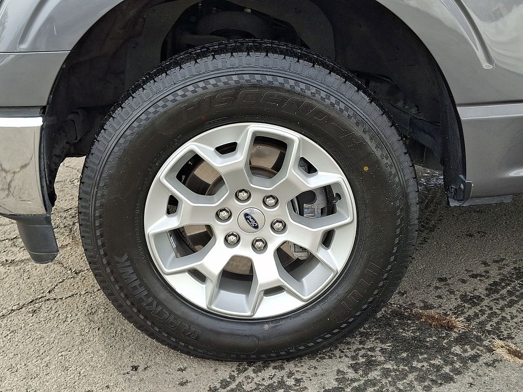 The interior of this F-150 is equally impressive, with features like the SYNC 4 infotainment system, 8-way power driver's seat with power lumbar, and a split-folding rear seat that provides ample space for passengers and cargo. The exterior boasts a sleek gray paint job and chrome accents, giving this truck a bold and modern look.