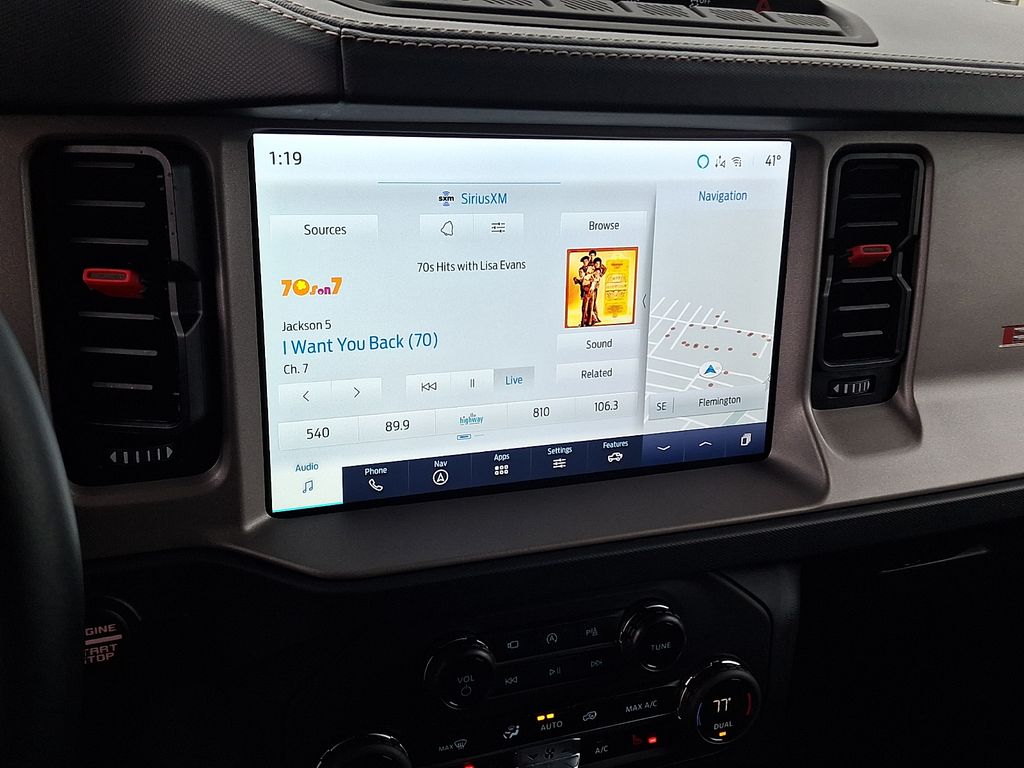 10 Speakers, 4-Wheel Disc Brakes, 4.7 Axle Ratio, ABS brakes, Air Conditioning, Alloy wheels, AM/FM radio: SiriusXM with 360L, Auto High-beam Headlights, Auto-dimming Rear-View mirror, Automatic temperature control, Brake assist, Code Orange Accent Seat Belts, Compass, Connected Navigation, Convertible HardTop, Convertible roof lining, Delay-off headlights, Driver door bin, Driver vanity mirror, Dual front impact airbags, Dual front side impact airbags, Electronic Stability Control, Emergency communication system: 911 Assist, Equipment Group 374A High/Lux Package, Exterior Parking Camera Rear, Front anti-roll bar, Front Bucket Seats, Front Center Armrest, Front dual zone A/C, Front fog lights, Front License Plate Bracket, Front reading lights, Front Row Top Panels & Door Storage Bags, Front wheel independent suspension, Fully automatic headlights, Garage door transmitter, Glass rear window, Heated door mirrors, Heated front seats, Heated steering wheel, Illuminated entry, Integrated roll-over protection, Interior Carbon Fiber Pack 6, Leather Shift Knob, Low tire pressure warning, Marine Grade Vinyl Bucket Seats, Navigation system: Connected Navigation, Occupant sensing airbag, Outside temperature display, Overhead airbag, Overhead console, Panic alarm, Passenger door bin, Passenger vanity mirror, Power door mirrors, Power steering, Power windows, Radio data system, Radio: B&O Sound System by Bang & Olufsen, Rear anti-roll bar, Rear seat center armrest, Rear window defroster, Rear window wiper, Remote keyless entry, Security system, SiriusXM Radio w/360L, Speed control, Split folding rear seat, Steering wheel mounted audio controls, SYNC 4, Tachometer, Telescoping steering wheel, Tilt steering wheel, Traction control, Trip computer, Turn signal indicator mirrors, Variably intermittent wipers, Voltmeter, Wheels: 17" Black High Gloss-Painted Aluminum.