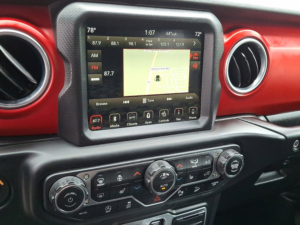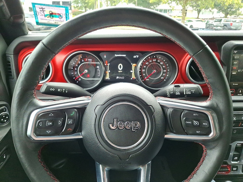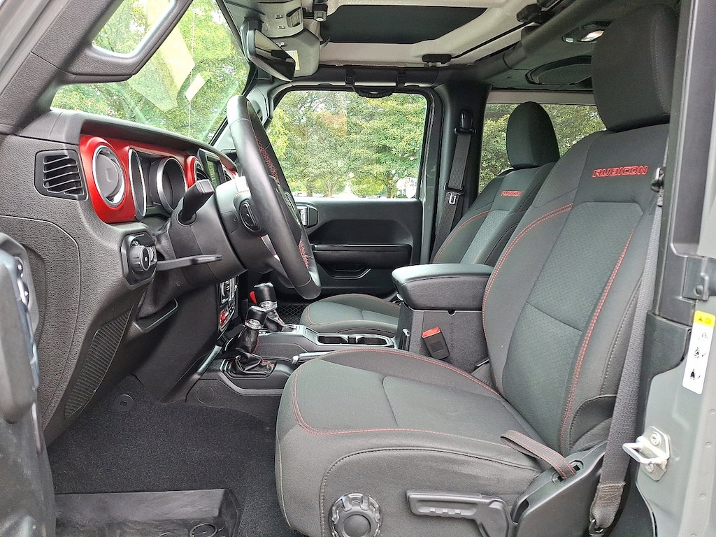 BODY COLOR 3-PIECE HARD TOP: Freedom Panel Storage Bag, Rear Window Defroster, Rear Window Wiper/Washer, TRANSMISSION: 8-SPEED AUTOMATIC (850RE) Tip Start, Hill Descent Control, ELECTRONIC INFOTAINMENT SYSTEM GROUP: SiriusXM Traffic Plus, Alpine Premium Audio System, HD Radio, Radio: Uconnect 4C Nav w/8.4 Display, Rear View Auto Dim Mirror, 1-Year SiriusXM Guardian Trial, GPS Navigation, SiriusXM Travel Link, Roadside Assistance & 9-1-1 Call, 8.4 Touchscreen Display, LED LIGHTING GROUP Daytime Running Lamps LED Accents, Front LED Fog Lamps, LED Reflector Headlamps, LED Taillamps, COLD WEATHER GROUP: Heated Steering Wheel, Heated Front Seats, SAFETY GROUP ParkSense Rear Park Assist System, Blind Spot & Cross Path Detection, TRAILER TOW & HD ELECTRICAL GROUP Class II Receiver Hitch, 700 Amp Maintenance Free Battery, 7 & 4 Pin Wiring Harness, 240 Amp Alternator, Auxiliary Switches, REMOTE PROXIMITY KEYLESS ENTRY, ENGINE: 3.6L V6 24V VVT UPG I W/ESS (STD), REMOTE START SYSTEM. Jeep Rubicon with Sting-Gray Clearcoat exterior and Black interior features a V6 Cylinder Engine with 285 HP at 6400 RPM*. Managers special!