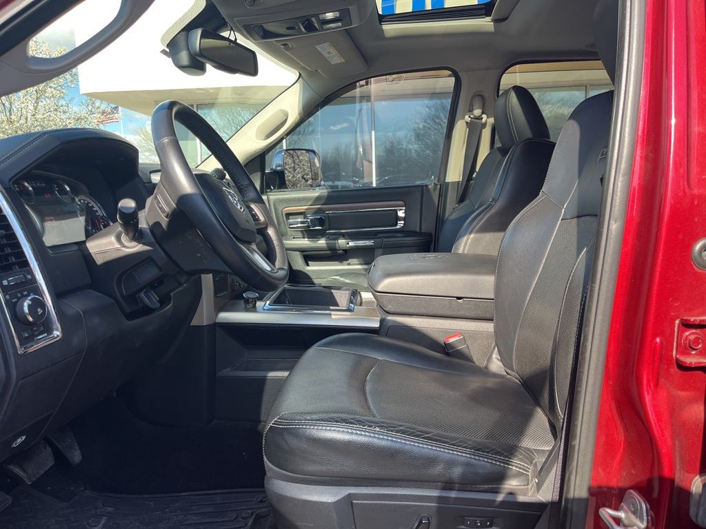 1 Year Trial (Registration Required), 1-Year SIRIUSXM Traffic Service, 1-Year SIRIUSXM Travel Link Service, 10 Speakers, 115V Auxiliary Power Outlet, 17" x 8" Aluminum Wheels, 4-Wheel Disc Brakes, ABS brakes, Air Conditioning, Alloy wheels, AM/FM radio: SiriusXM, Anti-Spin Differential Rear Axle, Audio memory, Auto High Beam Headlamp Control, Auto-dimming door mirrors, Auto-dimming Rear-View mirror, Automatic temperature control, Brake assist, Bumpers: chrome, Center Hub, Chrome Exterior Mirrors, Chrome Power Trailer Tow Mirrors, Compass, Convenience Group, Delay-off headlights, Driver door bin, Driver vanity mirror, Dual front impact airbags, Dual front side impact airbags, Electronic Stability Control, Emergency communication system, Exterior Mirrors Courtesy Lamps, Exterior Mirrors w/Heating Element, Exterior Mirrors w/Memory, Exterior Mirrors w/Supplemental Signals, Exterior Parking Camera Rear, Folding Flat Load Floor Storage, Front anti-roll bar, Front Center Armrest w/Storage, Front dual zone A/C, Front fog lights, Front reading lights, Fully automatic headlights, Garage door transmitter, GPS Navigation, HD Radio, Heated door mirrors, Heated Front Seats, Heated front seats, Heated steering wheel, High Back Seats, Illuminated entry, Keyless Enter-N-Go, Leather steering wheel, Leather Trim 40/20/40 Bench Seat, Locking Tailgate, Low tire pressure warning, Memory seat, Occupant sensing airbag, Outside temperature display, Overhead airbag, Overhead console, Panic alarm, ParkSense Rear Park Assist System, Passenger door bin, Passenger vanity mirror, Power 10-Way Memory Driver & 6-Way Passenger Seats, Power door mirrors, Power driver seat, Power Lumbar Adjust, Power passenger seat, Power steering, Power Sunroof, Power windows, Protection Group, Quick Order Package 26H Laramie, Radio data system, Radio: Uconnect 8.4A AM/FM/BT/Access, Radio: Uconnect 8.4AN AM/FM/BT/Access/NAV, Rain Sensitive Windshield Wipers, RamBox Cargo Management System, Rear 60/40 Split Folding Seat, Rear seat center armrest, Rear step bumper, Rear Wheel Spats, Remote keyless entry, Remote Proximity Keyless Entry, Remote Start System, Security system, SIRIUSXM Traffic, SiriusXM Travel Link, Speed control, Split folding rear seat, Spray In Bedliner, Steering wheel mounted audio controls, Tachometer, Tilt steering wheel, Traction control, Tri-Fold Tonneau Cover, Trip computer, Turn signal indicator mirrors, Variably intermittent wipers, Vendor Painted Cargo Box Tracking, Ventilated Front Seats, Ventilated front seats, Voltmeter.